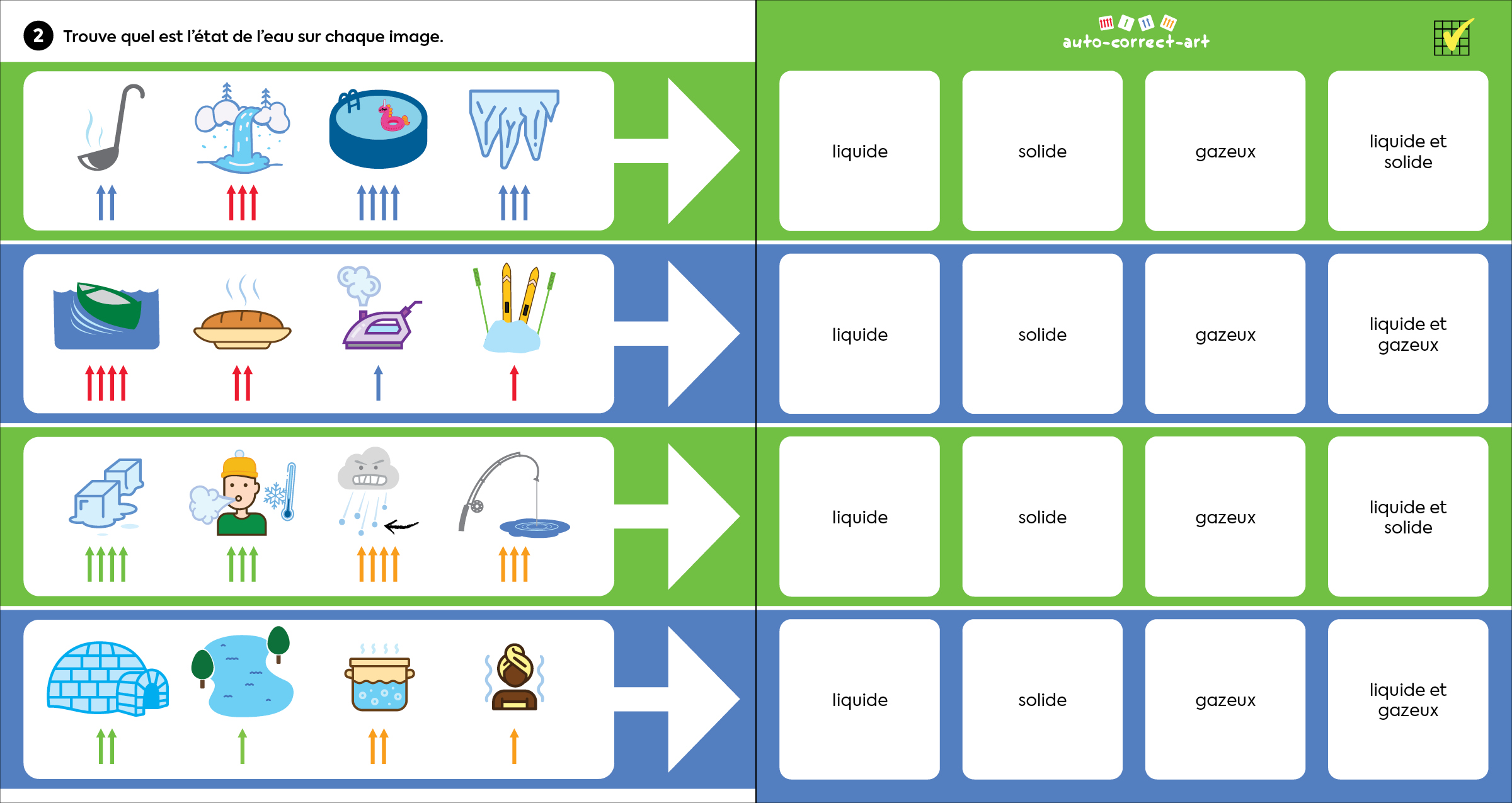 Cette série explore les états de l’eau à l’aide de différents exercices.